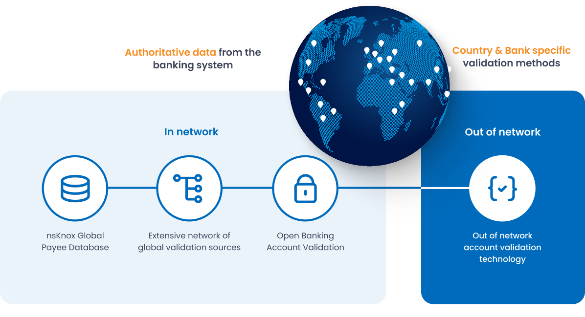 nsKnox is the only provider in the Bank Account Validation industry offering total coverage – we can validate any bank account, anywhere in the world, going far beyond the limitations of in-network-only solutions.